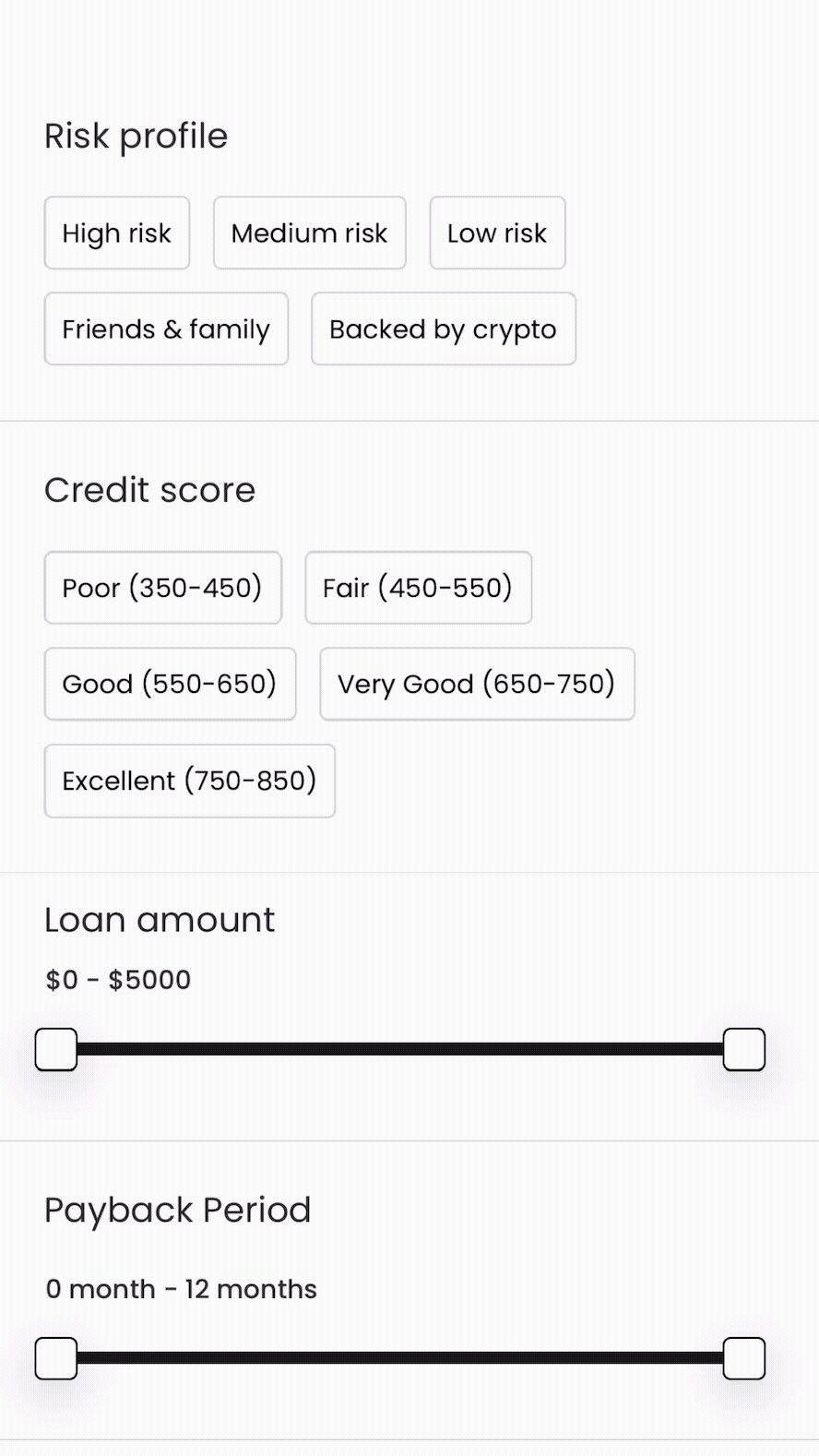 To empower investors to find opportunities that match their goals and risk appetite instantly, we designed a smart, flexible filtering system.